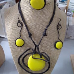 Juego de collar pendientes anillo de acero con cristal fundido amarillo