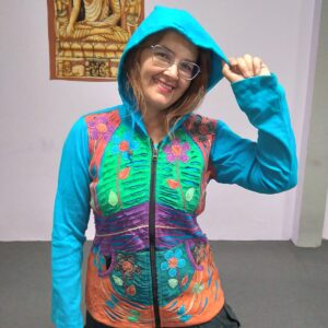 Chaqueta azul India con dibujos talla L